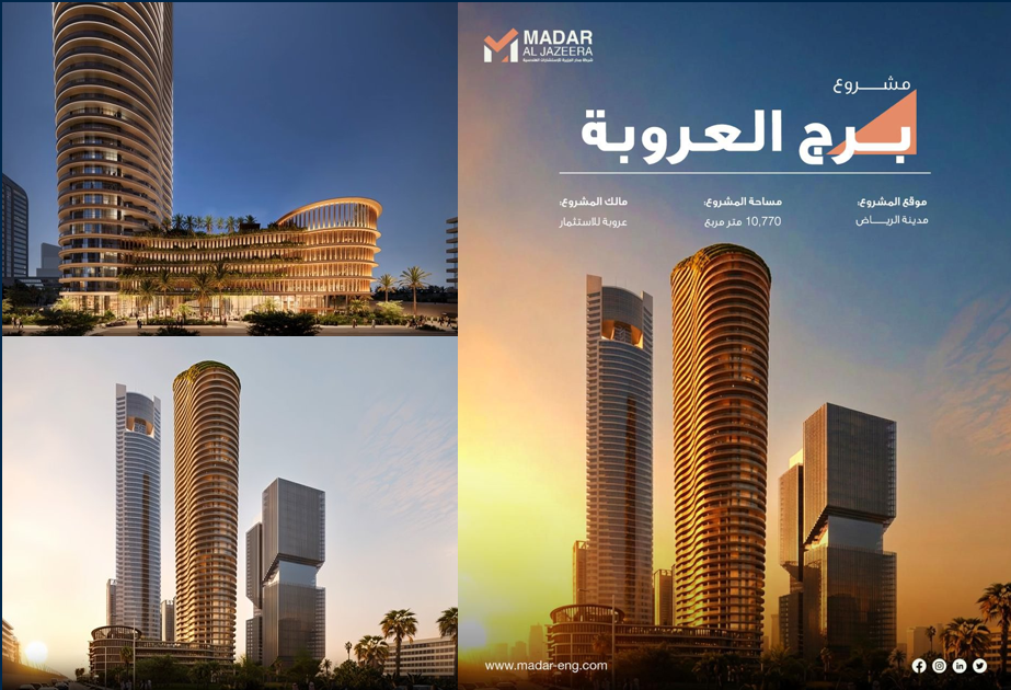 Madar Al Jazeera Engineering Consultants is contributing to the Urubah Tower Project for Urubah Investment, through reviewing and approving the fire protection and life safety systems in accordance with the Saudi Building Code and Civil Defense requirements. Strategically located on Olaya Street in the Al Yasmin district, the tower is a mixed-use residential development consisting of 53 floors, featuring luxury apartments, premium office spaces, commercial areas, and integrated recreational and sports facilities—making it one of Riyadh’s notable upcoming landmarks..