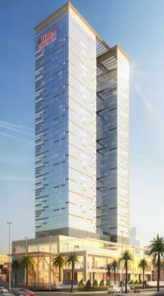 The project is a hotel building with a concrete structure consisting of 25 floors, operated by Hilton.
